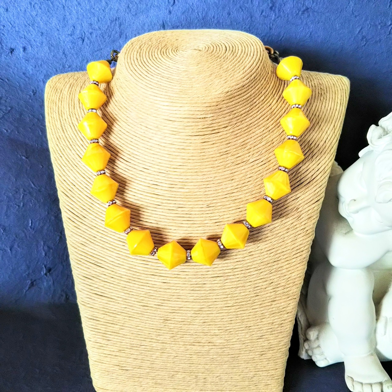 イエローカラーが美しい、大粒ボヘミアンビーズのネックレス