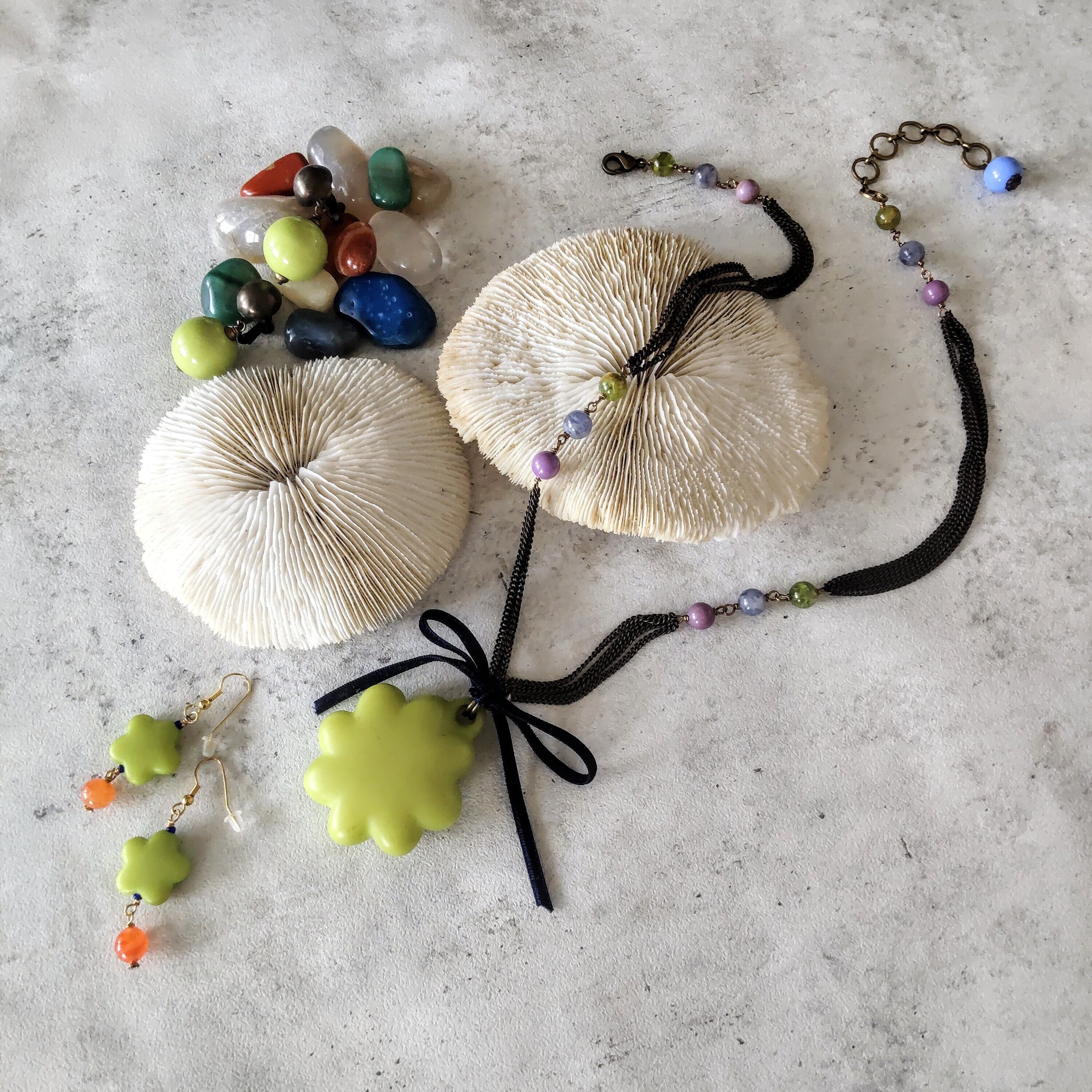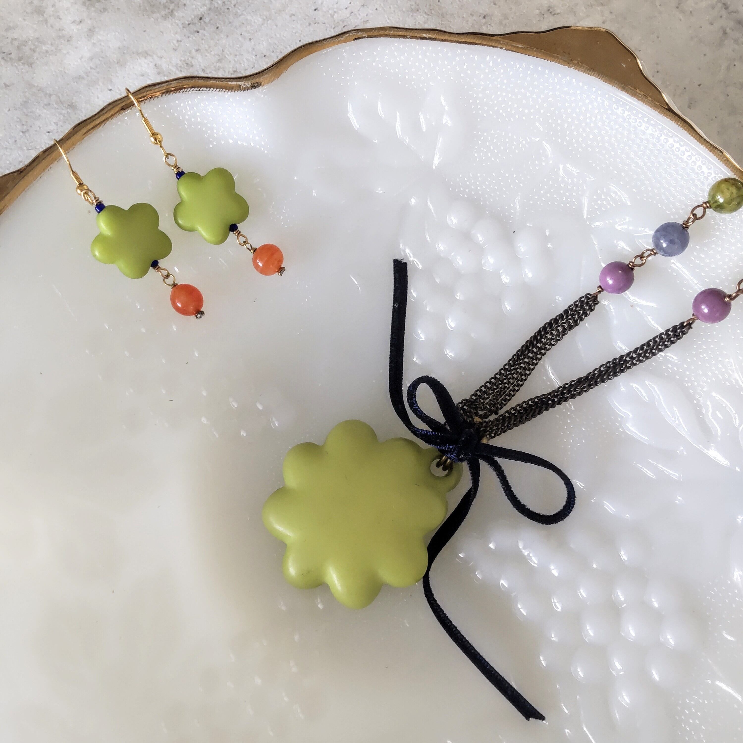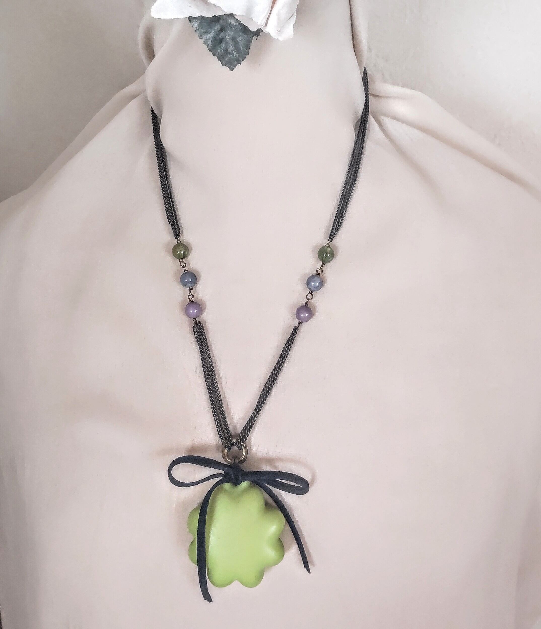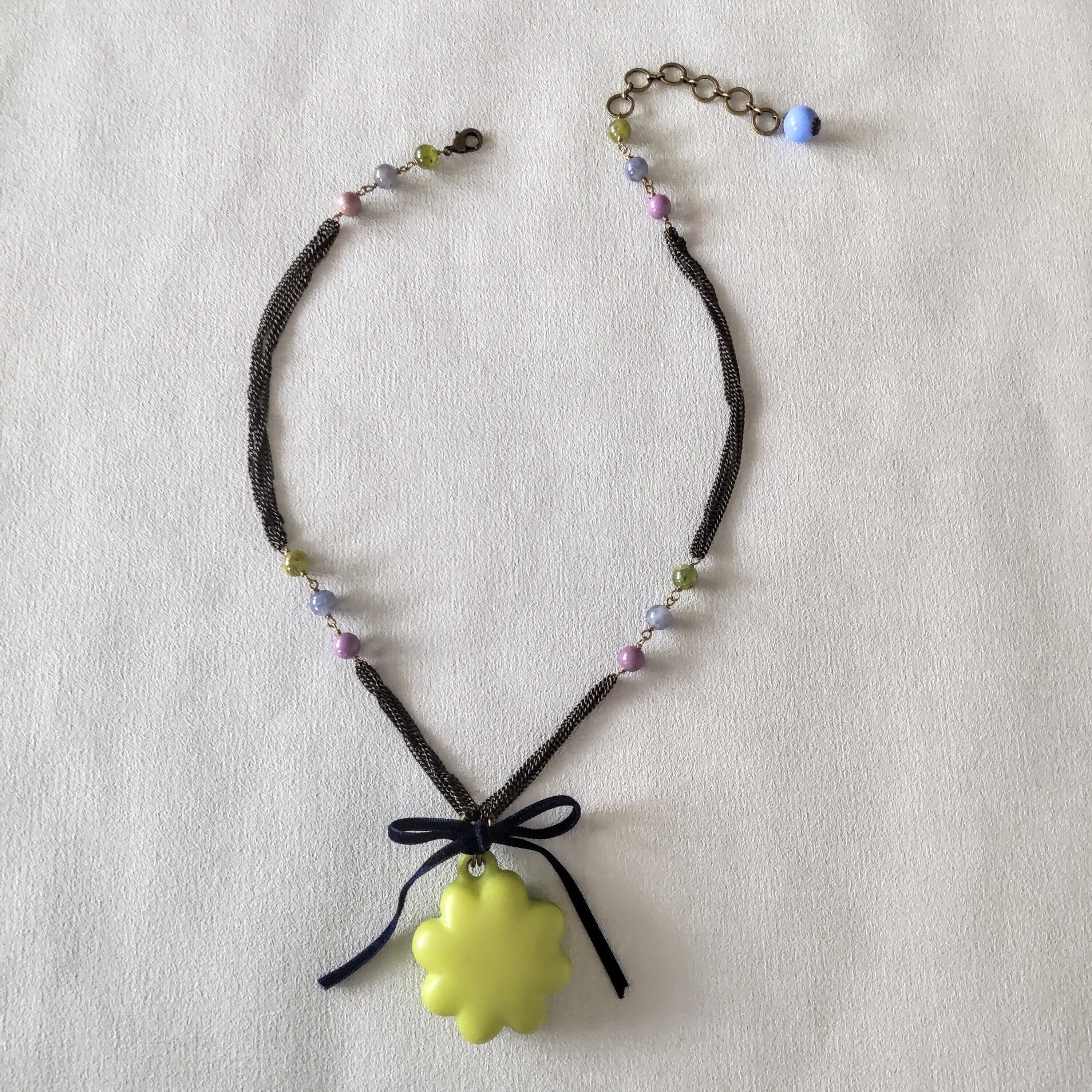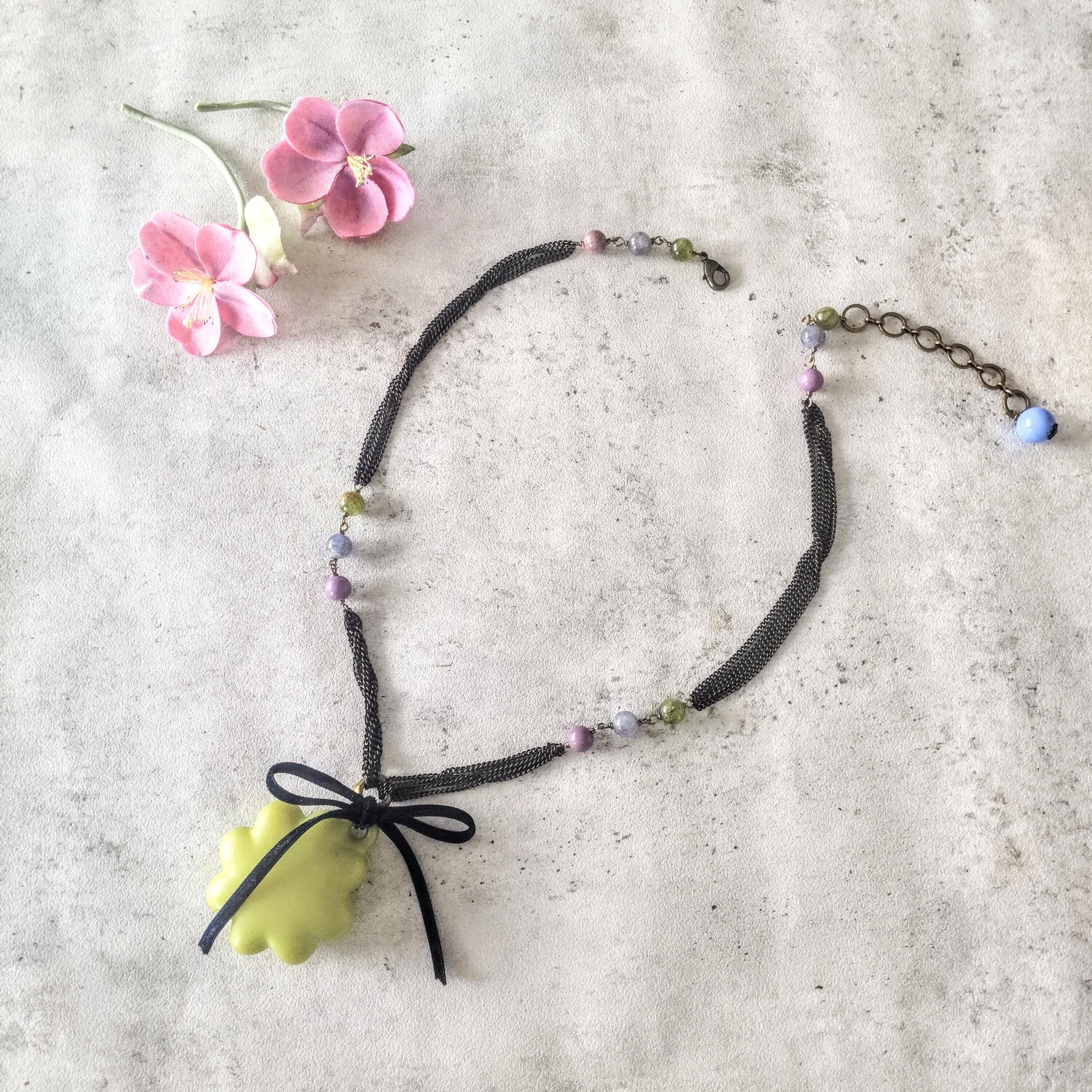 鶸色(ひわいろ:明るいイエローグリーン)のネックレス